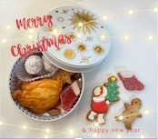 お家ですごす楽しいクリスマスをイメージした可愛らしいクッキー缶です